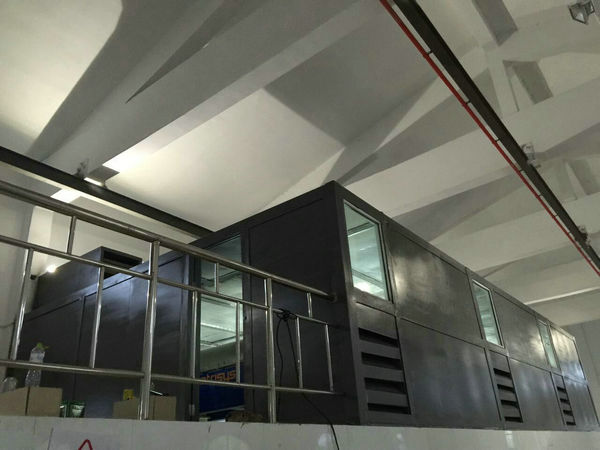 3/h,P=177Pa,n=1450r/min,N=0.75kW)配帶(dài)消聲器(qì)來完成,外部新鮮空氣由隔聲罩側麵底部開口進入,並(bìng)加裝進(jìn)風消聲器。內部采用防爆燈(dēng)具照明。